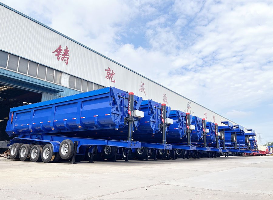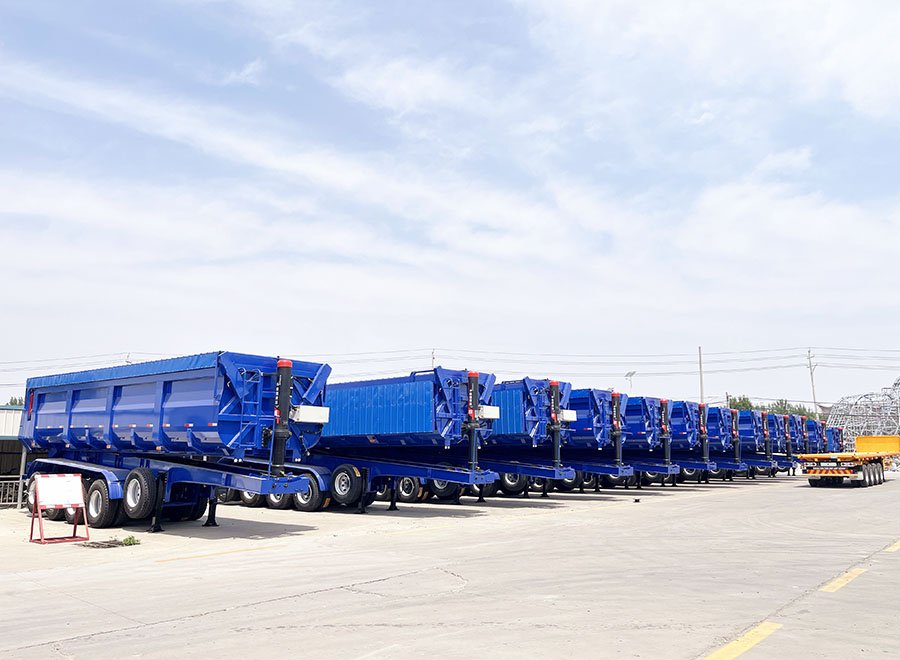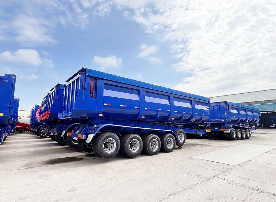 Our 4 axles rear dump semi trailer with an integrated electric cover system is the ultimate solution for high-capacity, environmentally friendly bulk transportation. Designed for the toughest mining and construction sites in Africa and South America, the 4-axle configuration provides superior load distribution for payloads up to 80 tons. The remote-controlled electric cover system ensures cargo safety, prevents dust pollution, and significantly reduces loading/unloading time compared to manual covering.