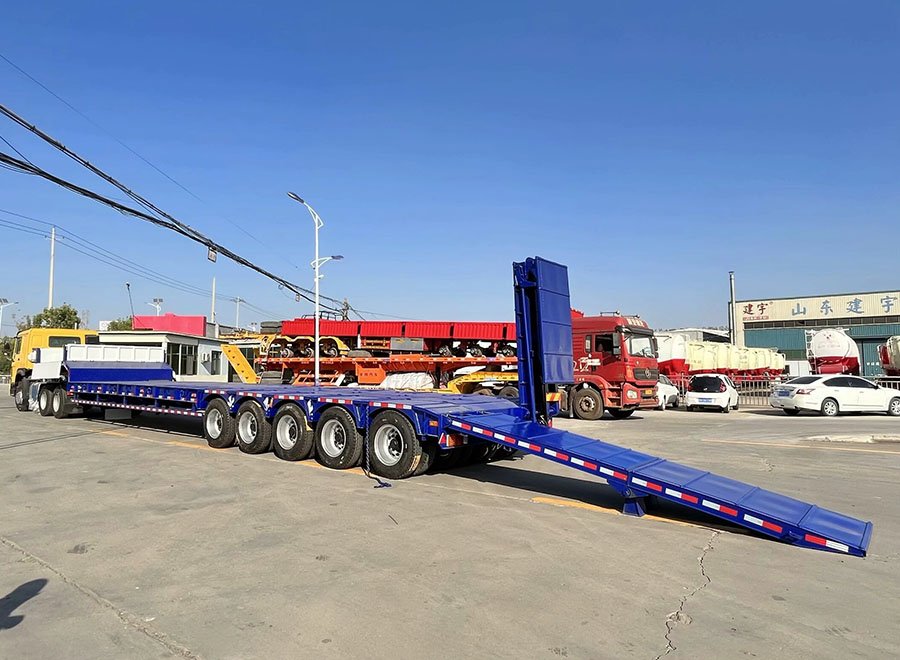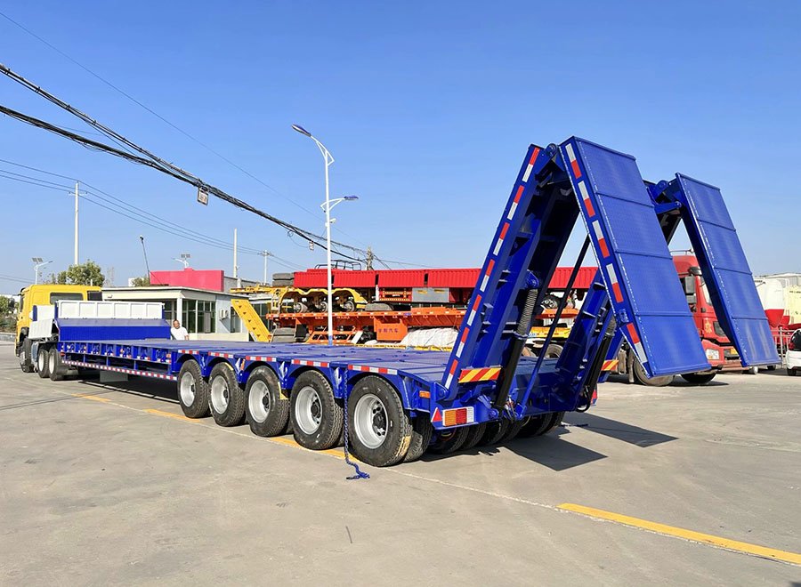 Product Name:80-100 Tons 5 Axles Lowboy Trailer with Hydraulic Ramps for Heavy Mining Equipment