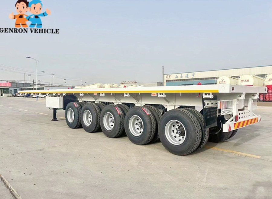 Our 5-axle flatbed semi trailer is the heavy-duty powerhouse of our fleet, specifically engineered for the most demanding transport tasks in Africa, the Middle East, and South America. With five high-capacity axles, this trailer offers superior weight distribution, ensuring compliance with strict road regulations while maximizing your payload up to 60-80 tons. It is the ultimate choice for transporting oversized machinery, steel coils, and heavy containers.