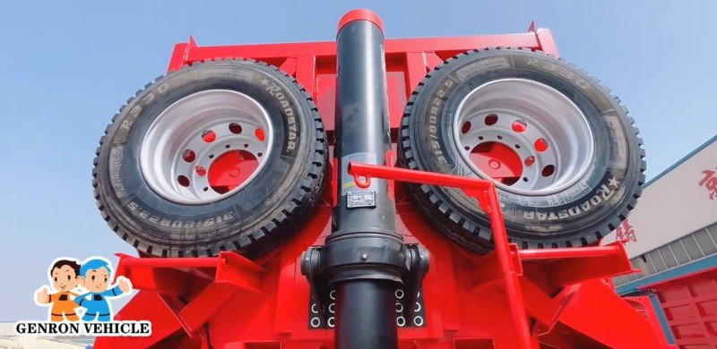 This batch of rear dump semi trailers ordered by the customer is 4 axles, size 10.2*2.5*3.7m, load up to 70 tons. Can meet the needs of customers mineral load. Our these rear dump trailers are made of high strength steel, thickened main beam and bottom plate; The front one axle is with lifting air bag suspension; The tire model is 315/80R22.5, which is more wear resistant and suitable for mining use; The hydraulic cylinder adopts the famous Jiaheng brand in China; Also equipped with two spare tires, hydraulic oil tank, toolbox, water and dust proof tarpaulin and other accessories.