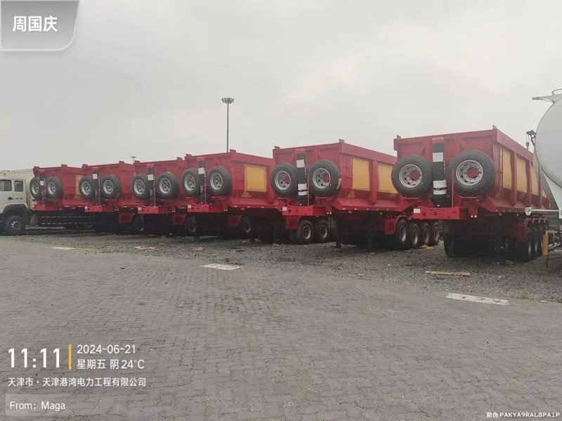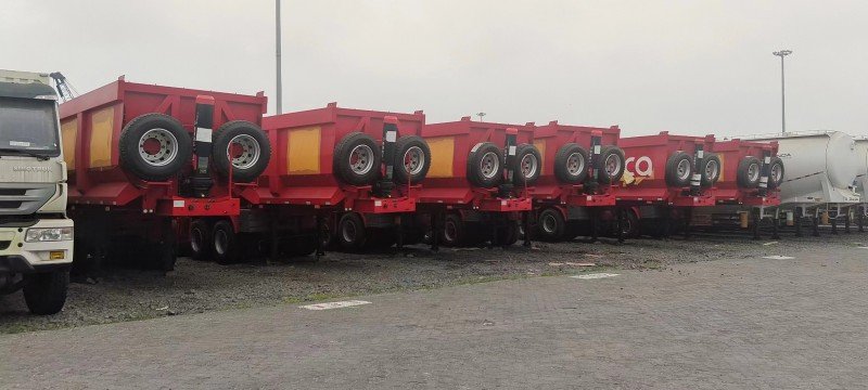 From June 17th-20th, 20 rear dump semi trailers were delivered from our factory to the loading port, ready for shipping to Mozambique.