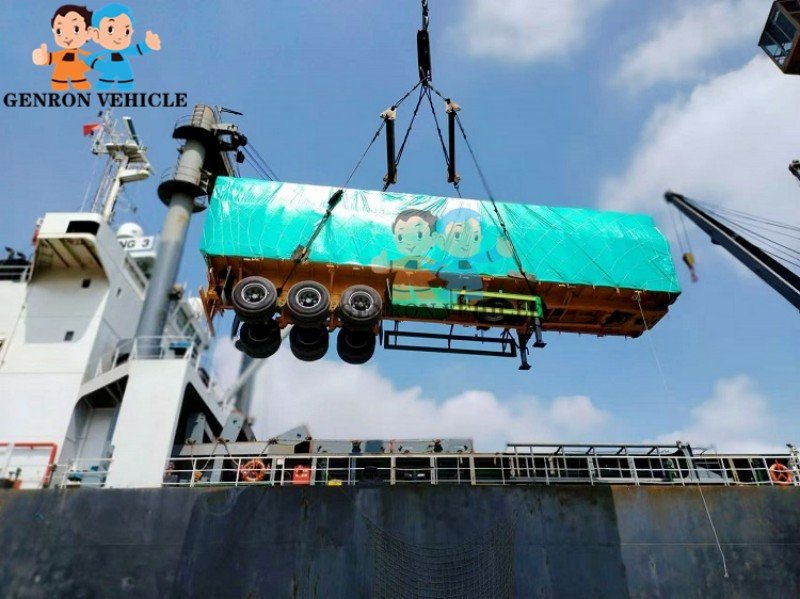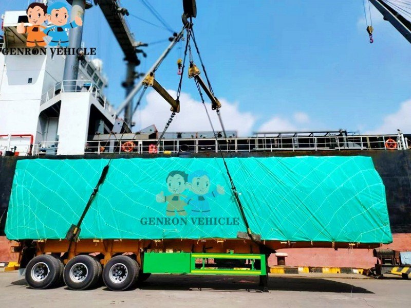 The side tipper semi trailers produced by Genron vehicle, have already been loaded on ship, preparing to sail to East Africa.