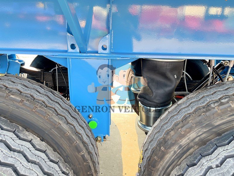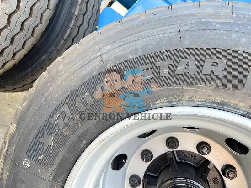 It’s 13 meter long, 4 axles, front one axle with air bag suspension. Tire is 12R22.5 Road Star brand. Loading capacity is about 60 tons. Customer bought it for transporting vegetables and fruits locally.