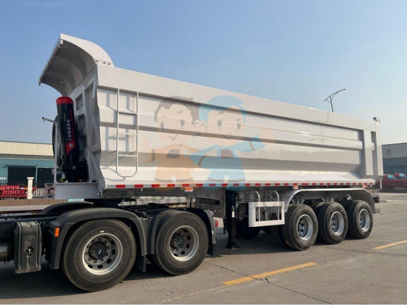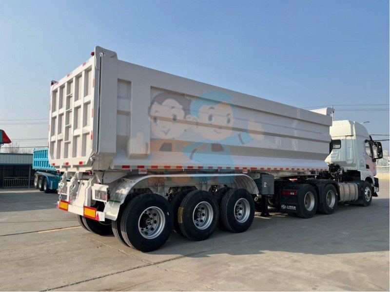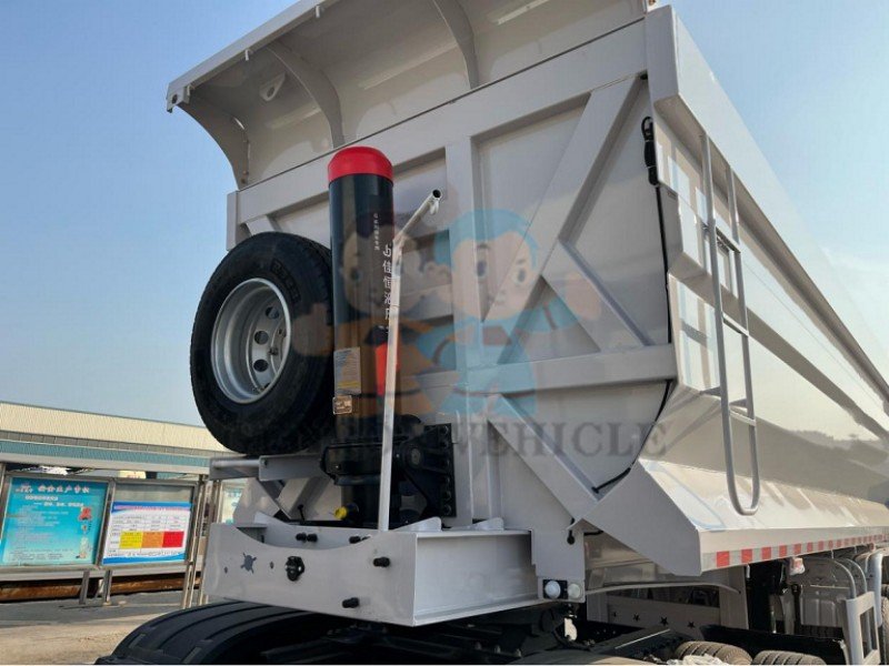 You can choose the color you like. Our 60 Ton Hydraulic Rear Dump Trailer is equipped with 12R22.5 tires (including two spare tires). The axles are equipped with Chinese brand FUWA, 13T, which is the best Chinese axle brand.Our 60 Ton Hydraulic Rear Dump Trailer are available in different configurations including three, four and multi-axle trailers, each offering different load capacities. It is equipped with 6 double brake air chambers and 28 tons thickened landgears to ensure the stability of the vehicle. And our spear parts are all original.